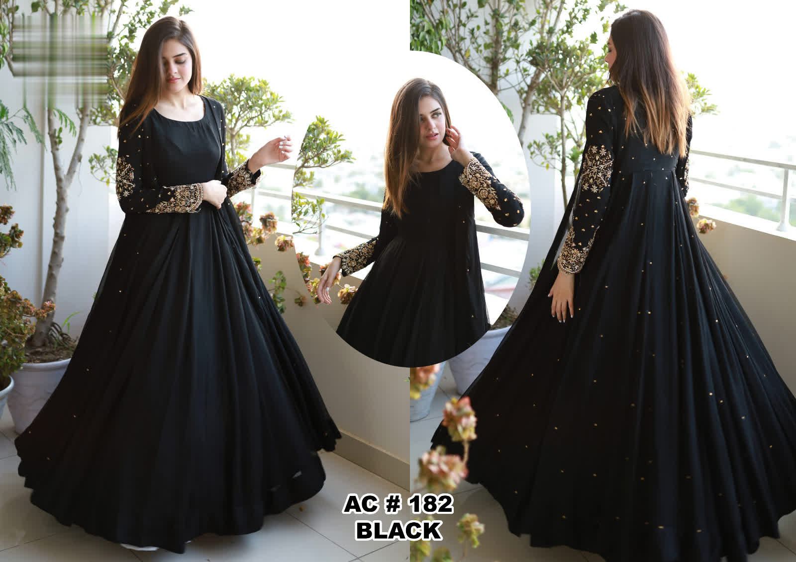 Embroidered With Pearls Attached Gown With Long Maxi Trouser 3PCs